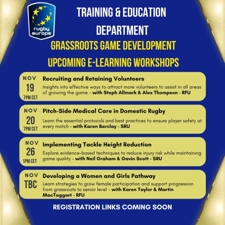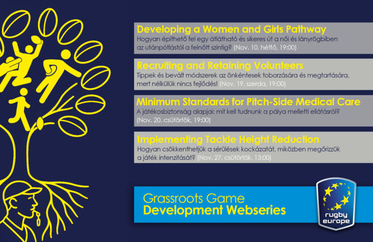 Közelgő Rugby Europe angol nyelvű webináriumok novemberben! A Rugby Europe novemberben új, ingyenes online webináriumokat szervez, melyek célja a grassroots (alapszintű) rögbi fejlesztése és a