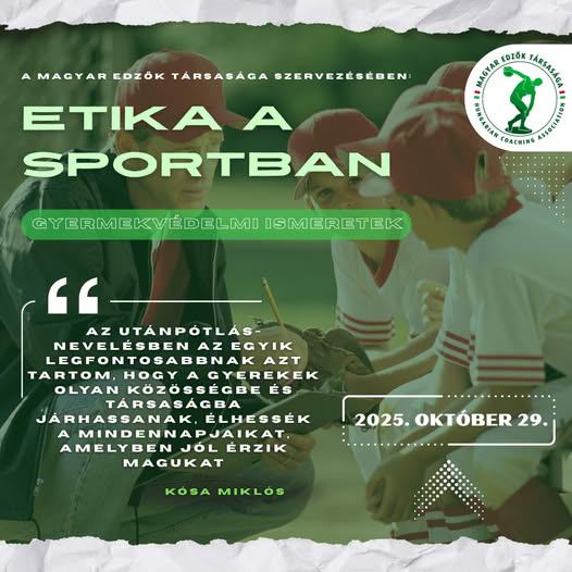 Csatlakozz hozzánk október 29-én! A Magyar Edzők Társasága ingyenes, online konferenciát tart „Etika a sportban, gyermekvédelmi ismeretek” címmel! Miért fontos ez a téma? A sport